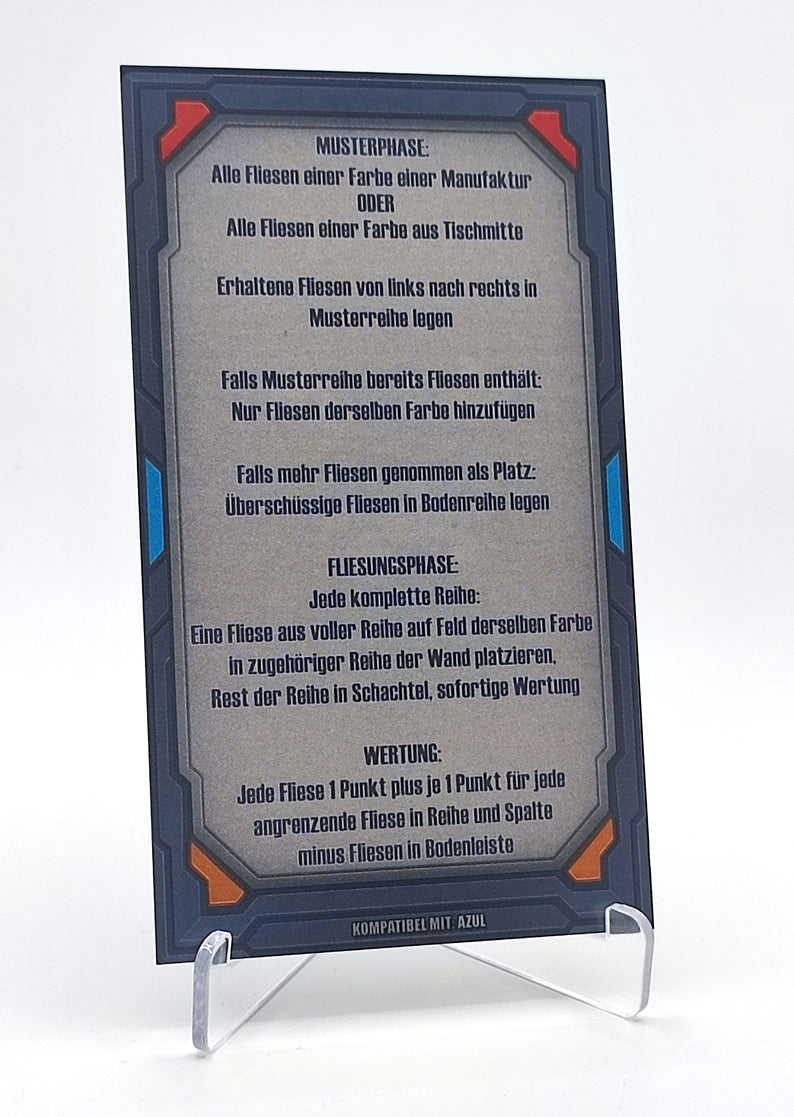 Hier kauft ihr ein Set bestehend aus 4 hochwertigen Spielhilfekarten, welches kompatibel ist für das Brettspiel:
